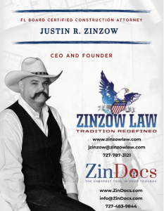 TAMPA BAY, FLORIDA , FL, UNITED STATES, November 13, 2025 /EINPresswire.com/ — Justin Zinzow, a Florida Board Certified Construction Attorney and CEO of Zinzow Law, has been appointed to several influential leadership positions within the Florida Home Builders Association (FHBA), including the esteemed role of Chair of the FHBA Governmental Affairs Committee. This significant appointment recognizes Zinzow’s extensive legal expertise in the construction industry and his dedication to advocating for the building profession across the